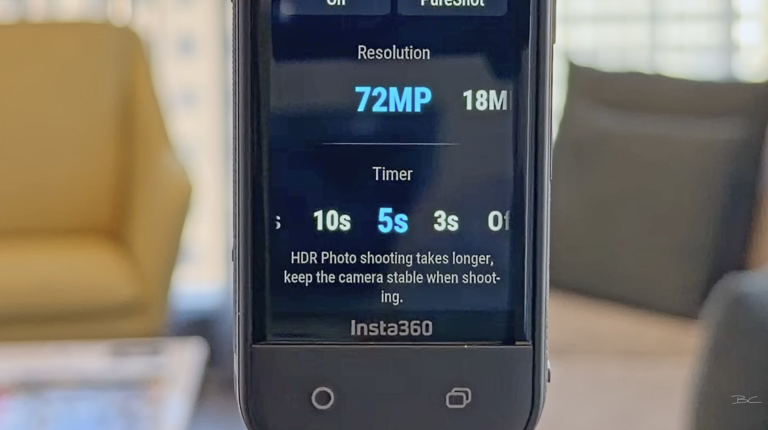 One of the biggest challenges when shooting interior 360 photos is balancing bright windows with darker interiors. Because of this, you should avoid leaving the camera in standard photo mode. Instead, enable the HDR photo option at the top of the screen.